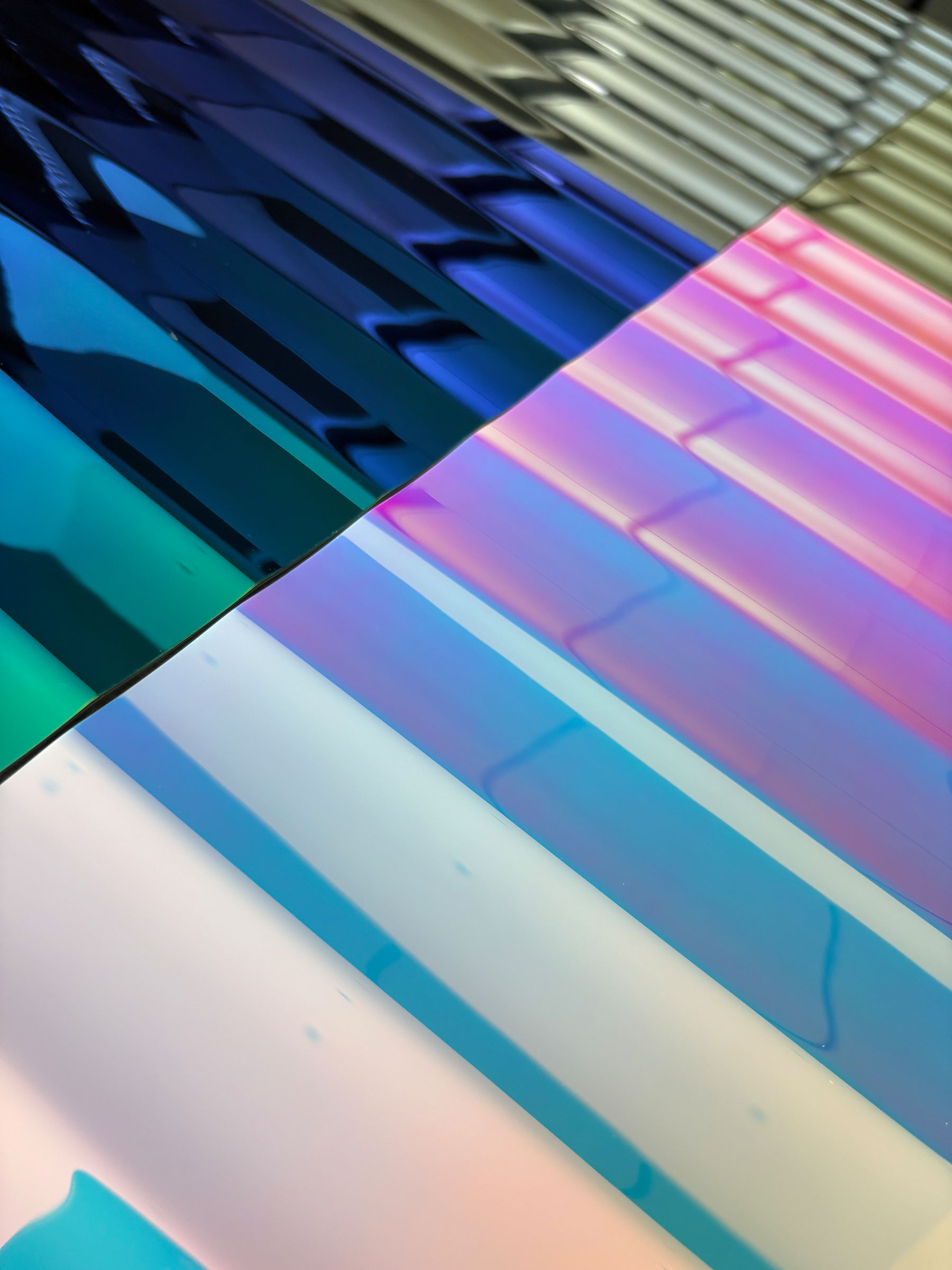 Due to the pattern, mechanical assembly (screws, spacers) is generally recommended. Applications in the ceiling area must be attached mechanically.
